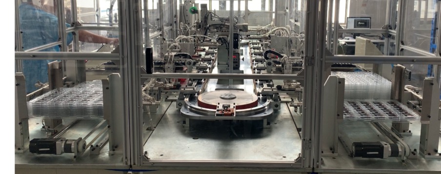 用于醫(yī)療血氧儀全自動(dòng)生產(chǎn)線,包含自動(dòng)上料,焊錫,自動(dòng)燒錄程序,視覺(jué)檢測(cè)等。