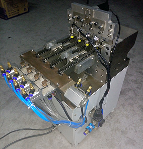 自動送螺釘機是集機械傳動、電磁振動原理,加上氣動和微電腦程序控制、液晶顯示等在內(nèi)的機、電、氣一體化自動化設(shè)備,能把倒進料盆的螺絲的經(jīng)過篩選、排序、檢測、分配并準(zhǔn)確快速地通過管道送出,可配合多種形式的自動或半自動鎖螺絲機器。四出四就是通過四個料道同時輸出四顆螺釘。